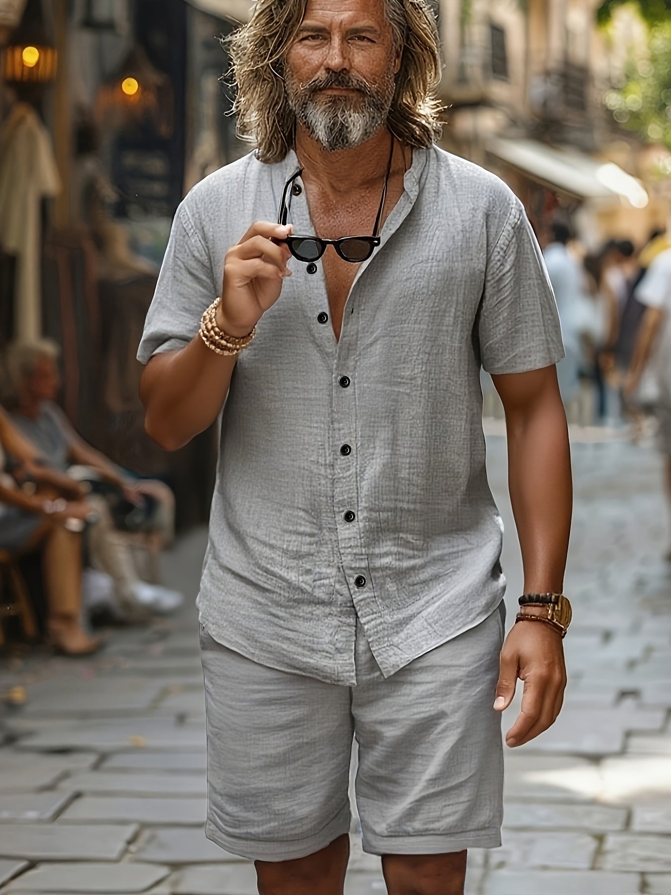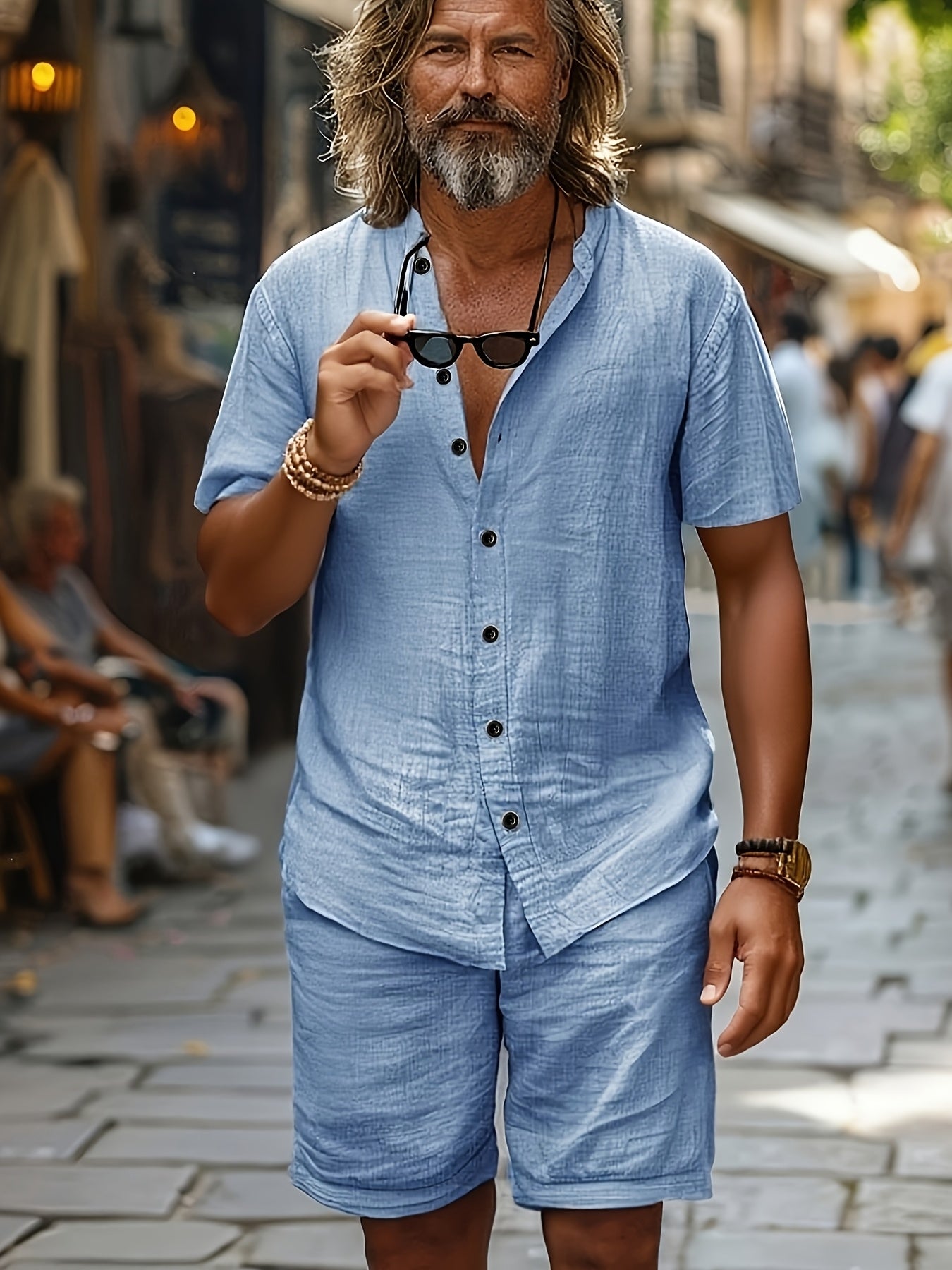 El Conjunto La Costa™ Doble no es solo ropa — es una declaración de estilo y libertad. Diseñado para hombres que valoran la comodidad sin renunciar a la elegancia, combina un corte relajado con un tejido premium de algodón puro, suave, ligero y transpirable. Perfecto para las tardes de primavera, escapadas a la playa o paseos urbanos con un toque de distinción.